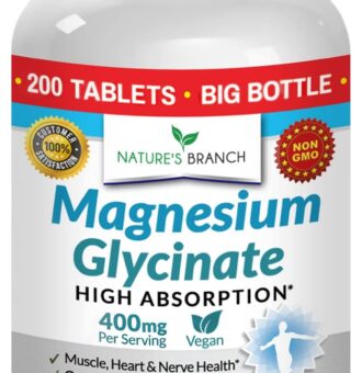 Original price was: $23.95.$19.16Current price is: $19.16.Magnesium Glycinate 400 mg – 200 Tablets – High Absorption, Non Buffered Bisglycinate Mag Supplement for Sleep, Leg Cramps, Heart, Ease Muscles, Calm Headaches for Women and Men, Non Powder Capsules