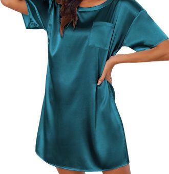 Original price was: $35.95.$22.49Current price is: $22.49.Ekouaer Cotton Nightgowns for Women Button Down Sleep Shirts Short Sleeve Night Gown Boyfriend Sleepwear Soft Night Shirts Blue Green