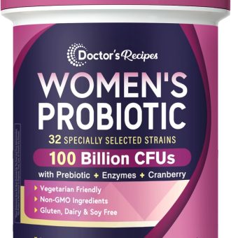 Original price was: $19.96.$17.97Current price is: $17.97.Doctor’s Recipes Probiotics for Women, 100 Billion CFU 32 Strains, with Prebiotic, Enzymes & Cranberry, Shelf Stable, Delayed Release, 30 Caps
