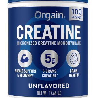 Orgain Creatine Monohydrate Micronized Powder, 100 Servings, Unflavored, Supports Muscle Growth, Post Workout Recovery and Brain Health, No Artificial Additives, for Men & Women, Vegan