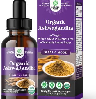 Original price was: $28.95.$19.95Current price is: $19.95.USDA Organic Ashwagandha Liquid Drops – Ashwagandha Root Extract for Stress and Mood Support – Delicious Pure Adaptogen Drops for Adults – Alcohol-Free Herbal Tinctures for Rest – 30 ml Bottle