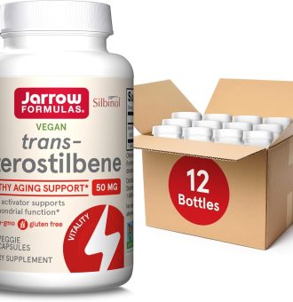 Jarrow Formulas Pterostilbene 50mg for Antioxidant Support, Dietary Supplement Supports Healthy Aging, 60 Veggie Capsules, 60 Day Supply(Pack of 12)