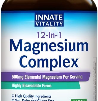 Innate Vitality 12-in-1 Magnesium Complex, 500 mg Elemental Mag, with Magnesium Glycinate Malate Taurate Aspartate & More, Non-GMO, for Nerves, Sleep, Heart, Energy, 120 Veg Caps