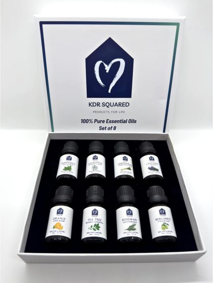 Box Set of Top 8 Essential Oils, 100% Pure, Aromatherapy, Use with Diffuser, Humidifier, Gift Set, Lavender, Eucalyptus, Rosemary, Lemongrass, Bergamot, Peppermint, Tea Tree, Orange