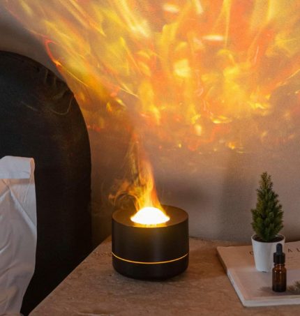 Colorful Flame Aromatherapy Machine, Essential Oil, Bedroom Atmosphere Light, USB Plug in Starry Sky Projection Light, Humidifier