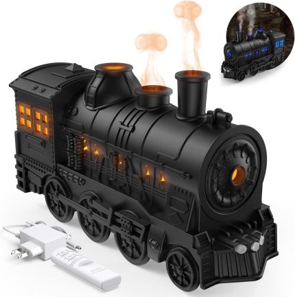 Essential Oil Diffuser Train Diffuser 300ml, Train Humidifier, Aromatherapy Diffuser Cool Mist Aromatherapy with 2 Light 2 Mist Mode Auto Shut-Off, Remote Included for Office Baby Home (Black)