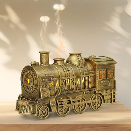 Essential Oil Diffuser Train Diffuser 300ml, Train Humidifier, Aromatherapy Diffuser Cool Mist Aromatherapy with 2 Light 2 Mist Mode Auto Shut-Off, Remote Included for Office Baby Home (Copper)
