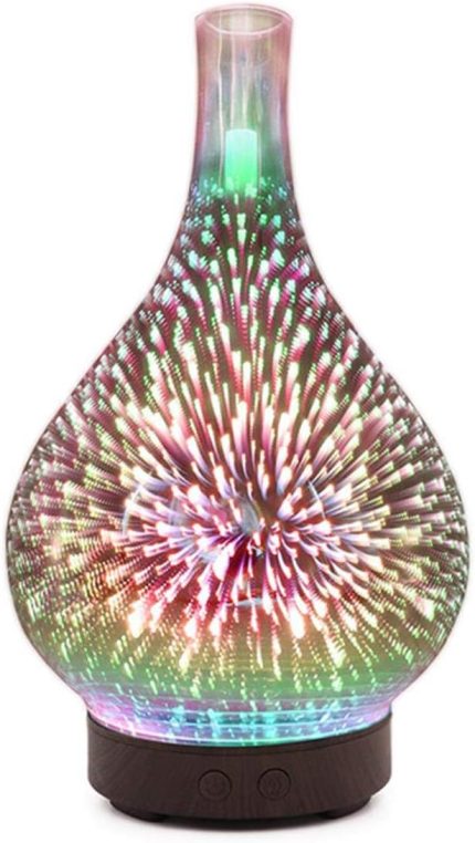 3D Firework Glass Essential Oil Aroma Diffuser Ultrasonic Aromatherapy Humidifier Aromatherapy Lamp- 7 Color Changing LEDs, Promote Sleep for Office and Home Yoga (Dark color)