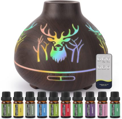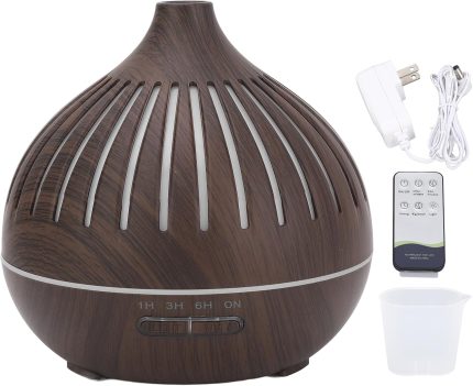 400ML Wood Grain Aromatherapy Diffuser Large Room with Remote, Auto Off Essential Oil Diffusers Humidifier with Night Light (US Plug)