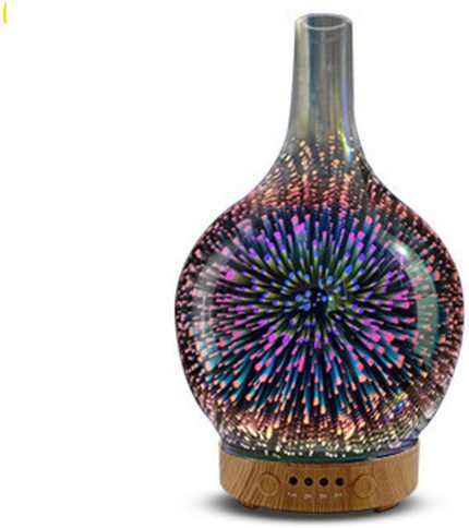 3D Fireworks Glass Air Humidifier with 7 LED Night Light Aroma Essential Oil Diffuser Mist Maker Ultrasonic Humidifier Gift(Wood Grain,US)