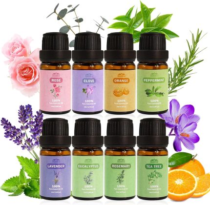 8 Pack 10 ML 2025 Pure Aromatherapy Essential Oil Set Pure Essential Oil Kit for Diffuser for Home,Candle Making Peppermint, Lavender,Eucalyptus,Tea Tree,Rose, Rosemary,Clove Orange