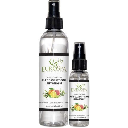 EuroSpa Aromatics Pure Eucalyptus Oil ShowerMist and Steam Room Spray, All-Natural Premium Aromatherapy Essential Oils – Citrus Infused, Duo Pack, 8oz and 2oz