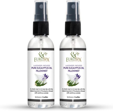 EuroSpa Aromatics Lavender-Infused Pure Eucalyptus Oil Pillow Mist Sleep Spray – Deep Sleep Pillow Spray – Lavender Bed Spray – Lavender Spray Sleep Mist – Lavender Linen Spray for Bedding – 2oz