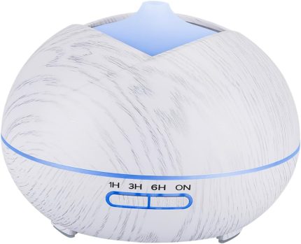 Air Humidifier USB Ultrasonic Aroma Diffuser Wood Grain 7 LED Light Electric Essential Oil Diffuser for Home Aromatherapy(White)