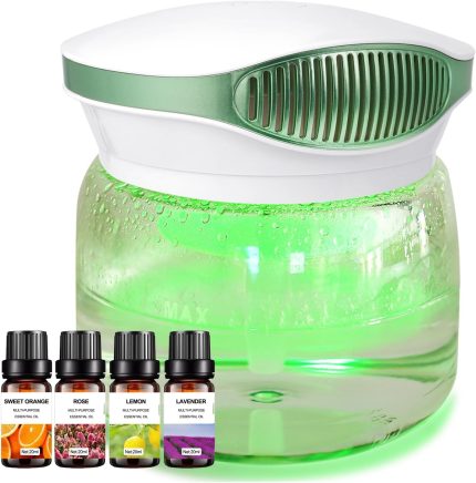 Air Washer Aroma Diffuser and Essential Oils Set (Lavender, Rose, Lemon, Orange) Relaxing, Sleep Well, 20ml Each