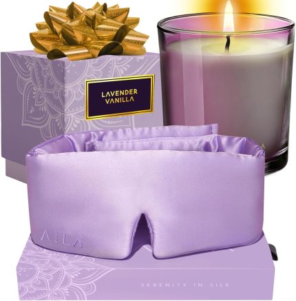 Aila Luxury Relaxation Set – 100% Silk Eye Mask & Lavender Vanilla Scented Candle for Meditation, Sleep & Stress Relief – Calming, Aromatherapy Bundle for Mindfulness, Self-Care