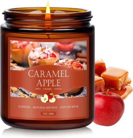 Fall Candle, Caramel Apple Scented Candles for Home, Natural Soy Autumn Candle Aromatherapy Candle, 7 oz Jar Candles Fall Gifts for Women Men
