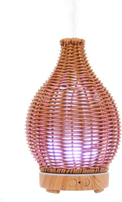 Hanna Roberts Indoor Rattan Essential Oil Diffuser with Remote Control, 100ml Capacity, Remote Adjustable 7 Colors, No Noise Free Auto Shut-Off Sleep Mode, Suitable for Bedrooms, Offices and Gyms