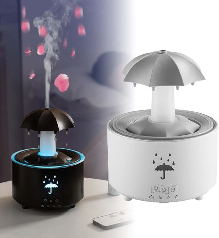Humidificador Con Sonido de Lluvia lnfinita Para Dormir | Rain Umbrella Humidifier & Aromatherapy Diffuser with Rain Sound Effect 7-Color LED Lights, Auto-Off & Timer, Water Drip Design (White)