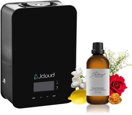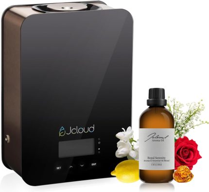 JCLOUD Upgrade Scent Air Machine for Home, HVAC Scent Diffuser Cover Up to 2000 Sq. Ft, Black with Royal Serenity Essential Oil – Inspired by Luxury Hotel Scent 100ML