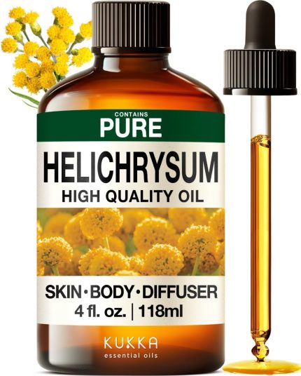 Kukka Helichrysum Essential Oil for Skin, Relaxation – 4 Fl Oz – Helichrysum Essential Oil for Aromatherapy, Skin Care, Home Diffusers, DIY Soap Making Scents