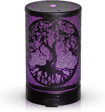AROMAR Essential Ultrasonic Oil Diffuser Cool Mist Humidifier & Aromatherapy Metal Diffusers for Essential Oils with Auto Shut-Off and 7 Colors LED for Home and Office (Black Tree of Life)