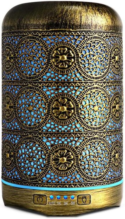 Metal Aromatherapy Machines 260ml Essential Oils Diffuser Air Humidifier 7 Colors Night Light Auto Shut Off Timer Office Bedroom(Bronze Color,US)