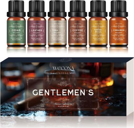 Men’s Essential Oils for Diffusers for Home – 6x10ML Fragrance Oil for Candle Making – Leather, Sandalwood, Coffee, Cedarwood, Cinnamon & Amber Accord | Essential Oil Set for Soap & Gifts