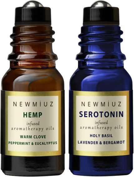 Migraine Headache Stick Roll on Peppermint Eucalyptus Clove and Arnica & Destress Roller Holy Basil Lavender and Bergamot Pack of 2