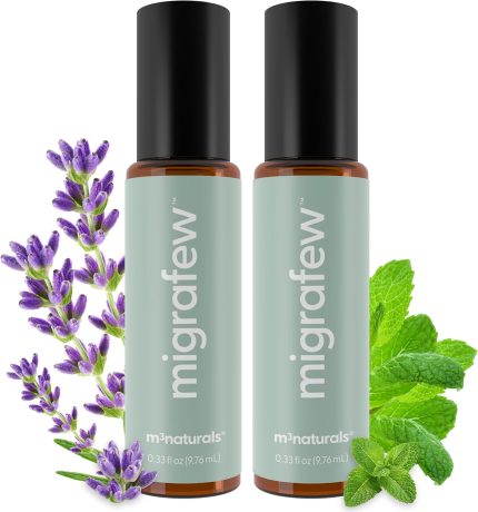 MigraFew Aromatherapy Migraine Roll On | Compact Headache Relief with Cooling Metal Roller for Head Tension and Pressure, Made with Peppermint, Spearmint and Lavender Essential Oils (Pack of 2)