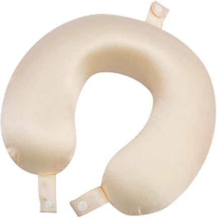 100% Mulberry Silk Travel Neck Pillow Case Replacement Cover Only, Highest 6A Grade 22 Momme Silk Travel Neck Pillow Removable Cover, Hypoallergenic, Anti Wrinkle, USA Made (Champagne)