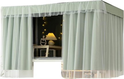 2 M Long Loft Bed Curtains Retractable Bracket Bunk Bed Curtains for 1 M Wide Single Bed Breathable and Odorless Top Bunk Bed Canopy Interior(Curtain*2+top,1.5M_Green B)
