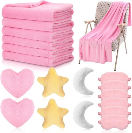 18 Pcs Sleepover Party Supplies Set for Girls Slumber Fleece Soft Blankets Moon Star Cloud Throw Pillow Cushion Plush Sleep Eye Mask for Spa Camping Birthday Favors