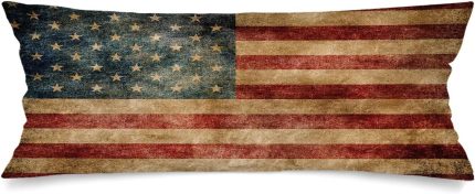American Flag Lumbar Pillow Covers 14×36 Long Body Pillow Cover for Bed,Vintage Retro USA Flag Patriotic Pillowcase with Envelope Closure Farmhouse Decorative Cushion Cover for Couch,Bedding,Red Blue