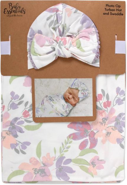 Baby Cotton Swaddle Blanket Wrap with Headband or Hat Set for Baby Girls, Boys Newborns and Infants 0-6 Months (Colorful Blooms)