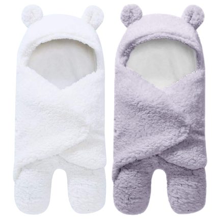 2 Pack Sherpa Baby Swaddle Blanket – Grey and White