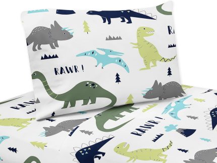 3 Piece Twin Sheet Set for Blue and Green Modern Dinosaur Bedding Collection
