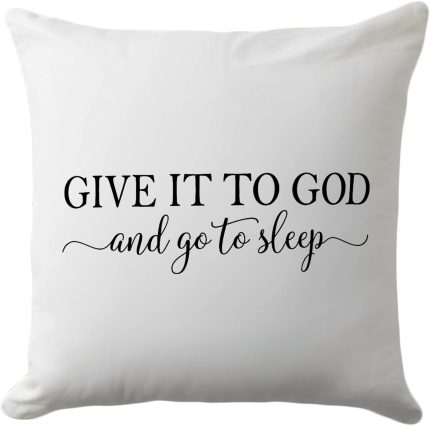 Christian Throw Pillow Cover 18×18 Inch – Give it to God and Go to Sleep – Motivational Quote Pillow Case – Inspirational Christian Decor for Bedroom or Living Room (White)