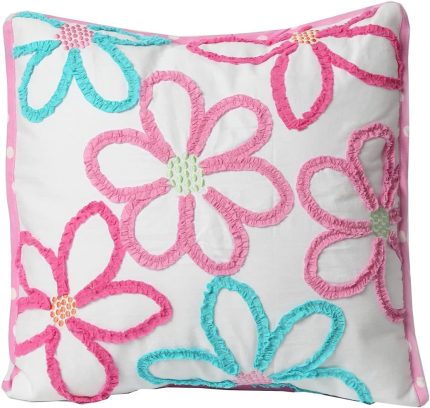 Cozy Line Home Fashions Maraih Flower Power Bloom Multi-Color Pink Blue Green Orange Quilt Bedding Set and Accessories Décor Throw Pillow