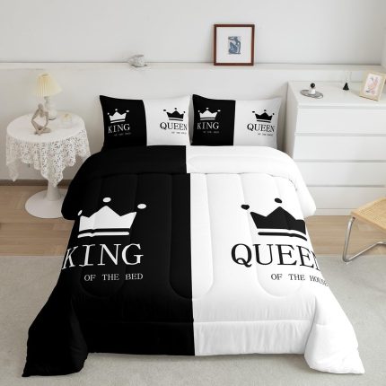 Crown Queen and King Comforter His and Hers Matching Couple Bedding Set Lover Romantic Valentine’s Day Presents Comforter Set Black and White Duvet Set Room Decor Quilt Set Full Size