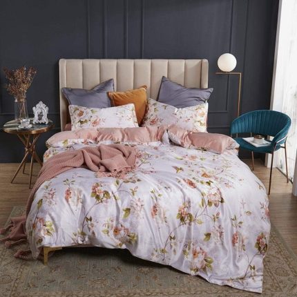4-Piece Bed Set,Summer ice Silk Four-Piece Set Wave Point Nude Sleeping Skin-Friendly Girl Heart Princess Style Nordic Simple Bed-Luo_2.0 (Quilt Cover 220240) Four-Piece Suit