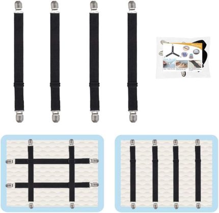 4Pcs Adjustable Bed Sheet Straps Clips, Elastic Mattress Sheet Fasteners Holder and Suspenders, Grippers to Hold Sheet, Mattress, Sofa, Couch, Table Cloth, Recliner Ironing Board Cover and More