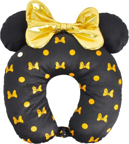 FUL Disney Minnie Mouse Travel Neck Pillow with 3D Ears and Bow for Airplane, Car and Office Comfortable and Breathable, Black/Yellow