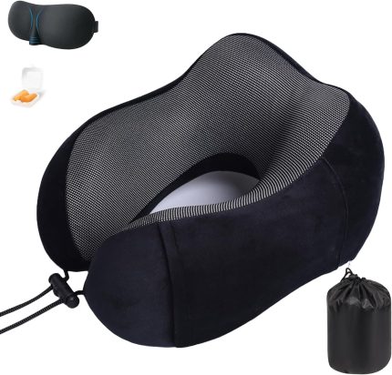GANNEPIE Travel Pillow Premium Memory Foam for Sleeping, Comfortable & Supportive Neck Pillow Portable Accessories with Airplane, Car, Office and Home(Black)