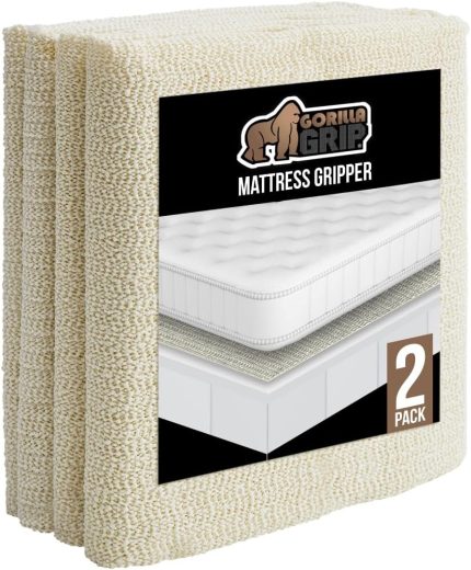 GORILLA GRIP Non Slip Mattress Gripper, Prevents Mattresses from Sliding and Holds Bed in Place, Pad Grips Beds, Sofa, Couch, Chair Cushions and Helps Keep Topper from Slipping, 2 Pack Pads, Twin