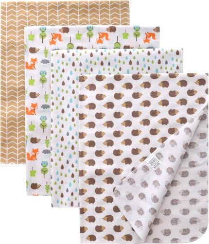 Gina Era Unisex Baby Cotton Flannel Receiving Blankets, Baby Blankets 4 Pcs, Baby Swaddle Blankets, Baby Flannel Blanket 30×30 Inches for Boy Girl (Style-7)
