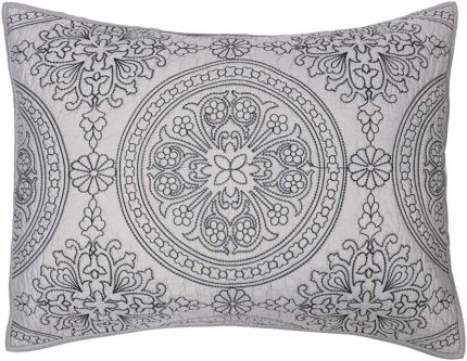 ELEGANT LIFE HOME 100% Cotton Medallion Embroidered Standard Pillow Sham 20 x 26 inches, Gray, 1 Piece