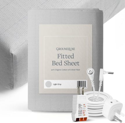 GroundLuxe Organic Fitted Grounding Sheet in Light Gray for a California King Size Bed