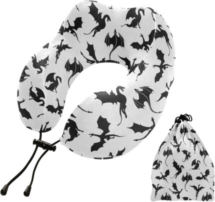Gredecor Travel Pillow Black Dragons Pure Memory Foam Neck Pillow for Sleeping, Soft Comfortable Cover Neck Pillow with Adjustable Clasp for Airplane/Car/Office