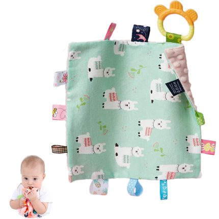 HECCEI Baby Tags Security Blankets – Baby Soothing Plush Blanket with Colorful Tags, Square Sensory Toys, 10 x 10 inches, for 3-12 Months Babies